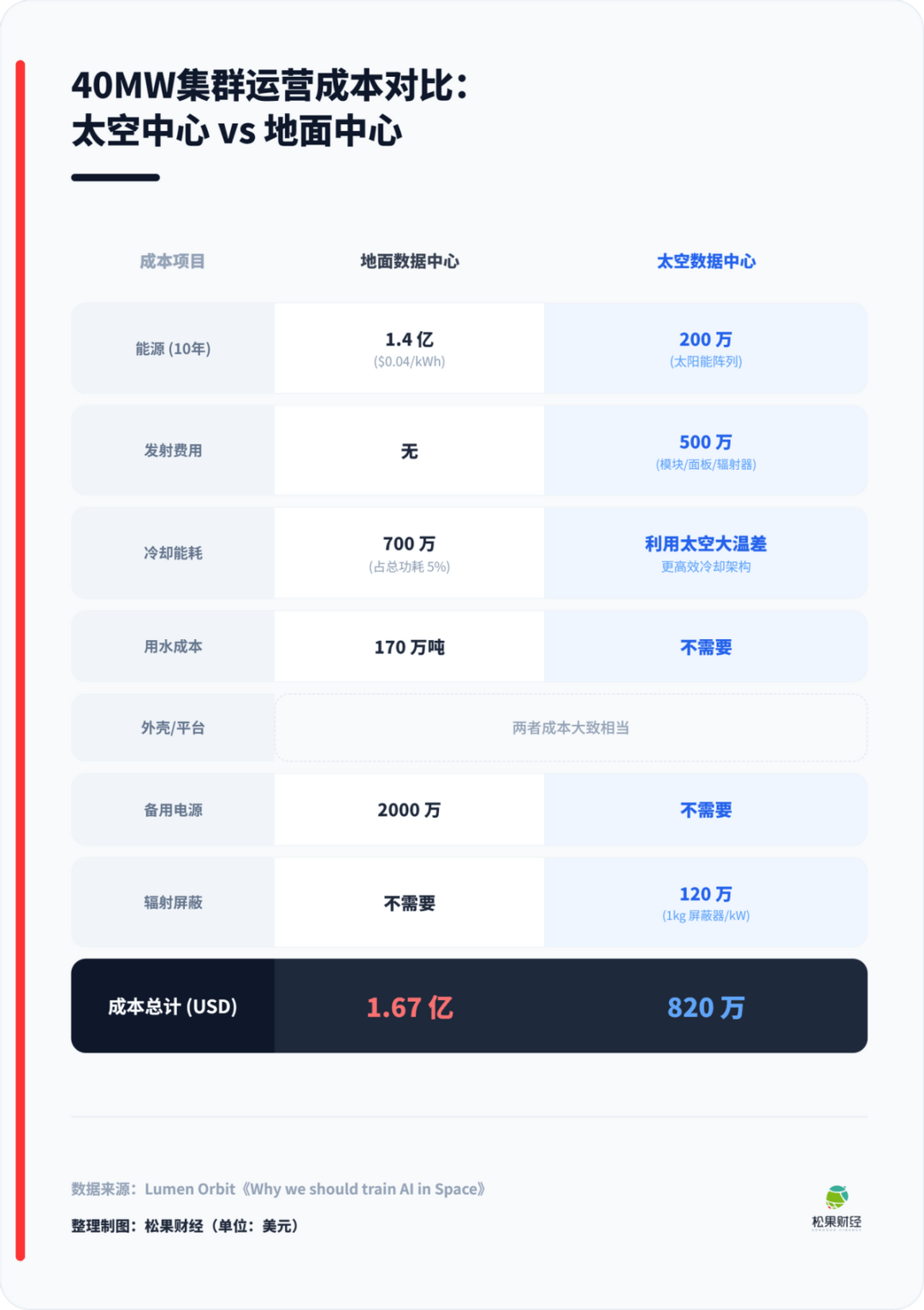 谷歌最积极的预测如下:“历史上,高昂的发射成本一直是大规模空间系统的主要障碍。然而,我们对历史和预计上市价格数据的分析表明,如果持续学习速度,价格可能在2030年代中期降至低于每公斤200美元。在该价格点下,发射和运营一个基于空间的数据中心的成本,按每千瓦/年计算,大致可与同等地面数据中心的能源成本相当”