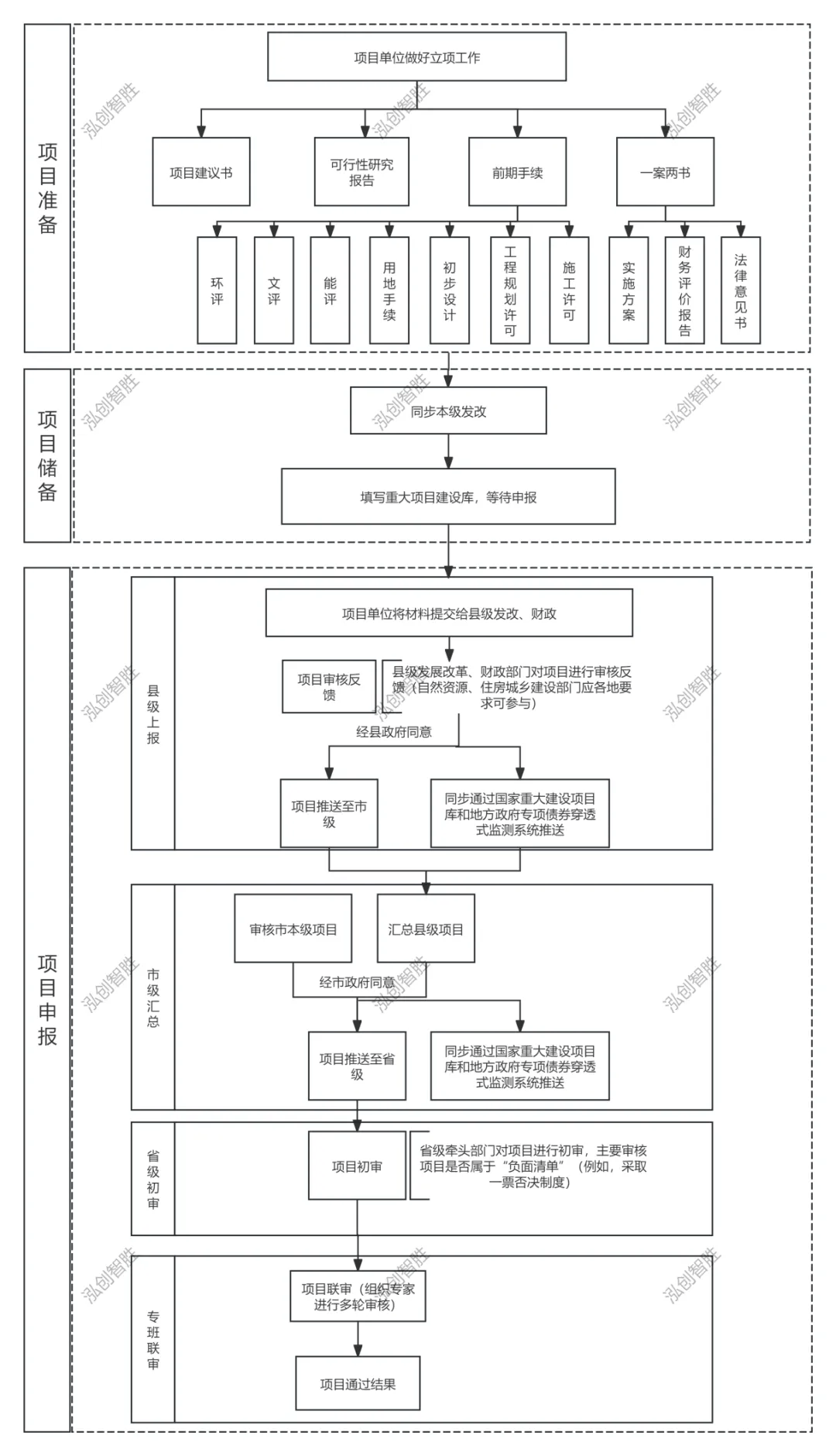 鉴于近期专项债券申报咨询需求较多,泓创智胜基于全国各省份的实操经验,梳理了专项债券申报的核心流程。由于各省在政策执行、审核标准及材料要求上存在差异,具体申报时需结合当地最新政策调整。建议申报单位提前与地方财政部门或专业机构沟通,确保符合属地化要求。