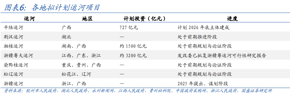 补齐基础设施短板弱项:多地继续聚焦补齐基础设施短板弱项,包括进一步谋划铁路、公路、水网建设等重大工程,补齐数字基础设施、城市管网、城市更新、水利基础等方面。其中,可重点关注重大水利工程进度,如“十四五”规划提出的雅鲁藏布江下游水电开发重大工程,2025年7月19日正式开工、总投资约1.2万亿,吉林大水网工程、南水北调中线引江补汉工程等都在紧密推进。此外,各地也在加强运河建设、谋划水运设施网络,包括已完工的江淮运河,建设中的平路运河,尚处前期论证阶段的湘桂运河、浙赣粤运河、渝黔桂运河、松辽运河、荆汉运河等,投资规模大,单条运河计划总投资额可超3000亿。